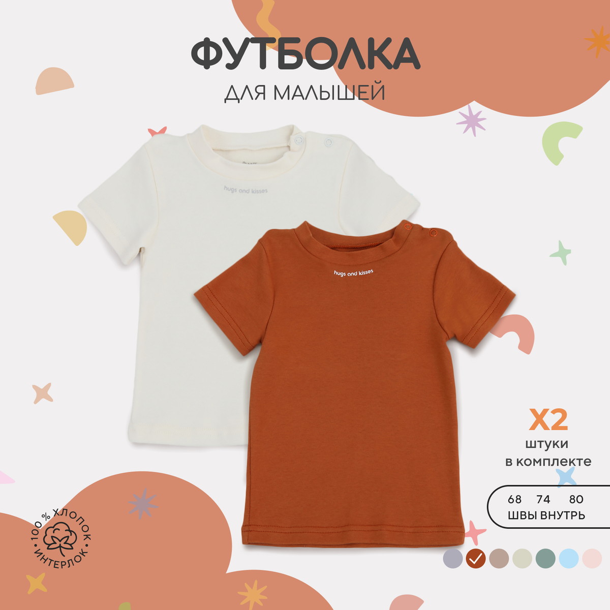 Коллекция Hugs and kisses покажет вашу нежность и заботу. Отдельного внимания заслуживают устойчивые биоморфные принты, с любовью разработанные нашими дизайнерами. Прибавьте к этому лаконичный стиль, актуальные цвета, премиальный хлопок (интерлок-пенье), безопасные красители, комфортное лекало, качественную фурнитуру в тон, отсутствие внутренних бирок и мягкие швы.