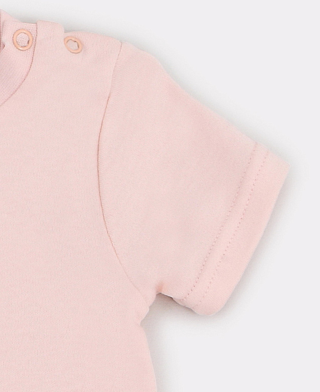 Для отпуска или теплых летних дней крохе обязательно пригодится футболочка. Очаровательную модель с кнопочками рядом с горловиной удобно как снимать, так и надевать.