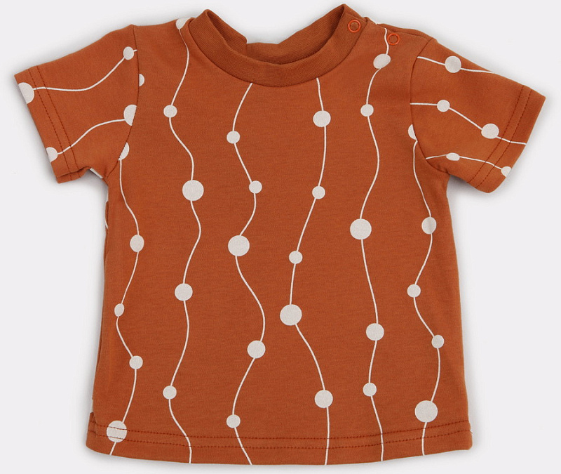 Для отпуска или теплых летних дней крохе обязательно пригодится футболочка. Очаровательную модель с кнопочками рядом с горловиной удобно как снимать, так и надевать.