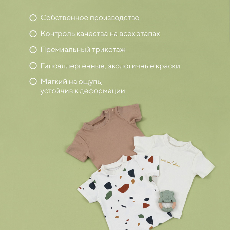 Одежда Rant Mosaic с особым вниманием создана для новорожденных и малышей постарше. Базовые цвета, актуальный мозаичный принт, лаконичное исполнение, премиальные ткани - визитная карточка наших моделей