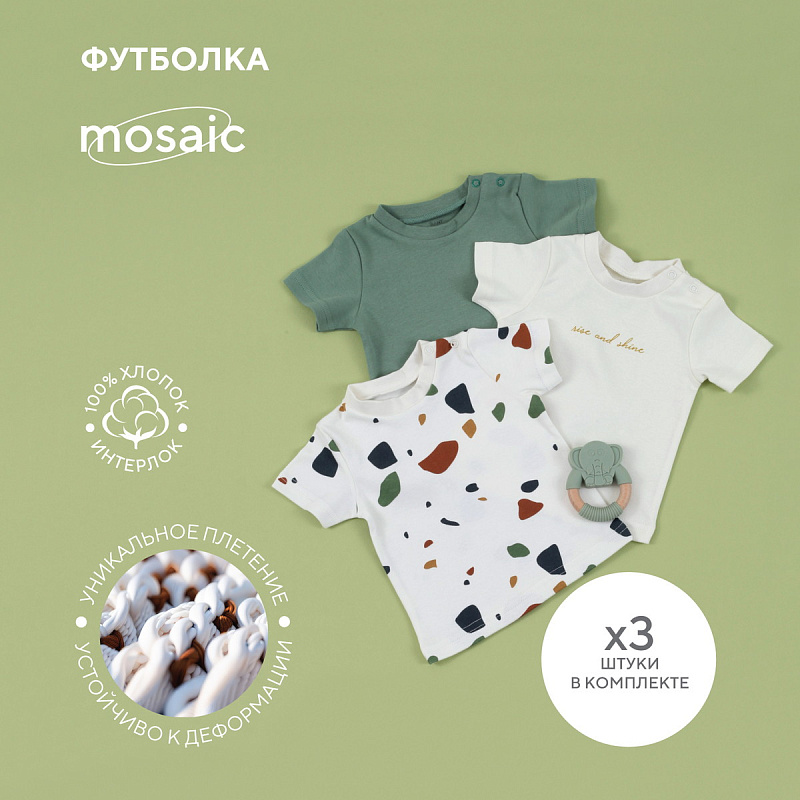 Лимитированная коллекция Mosaic - верный способ сделать детство особенным. Актуальный мозаичный принт, базовые цвета, лаконичный дизайн, комфортное лекало, качественная фурнитура в тон и хлопок премиум-класса (интерлок-пенье).