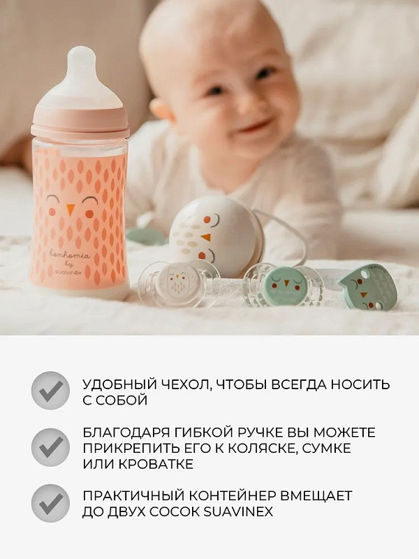Футляр для двух сосок Suavinex Owl с ручкой для подвешивания 307760 GR