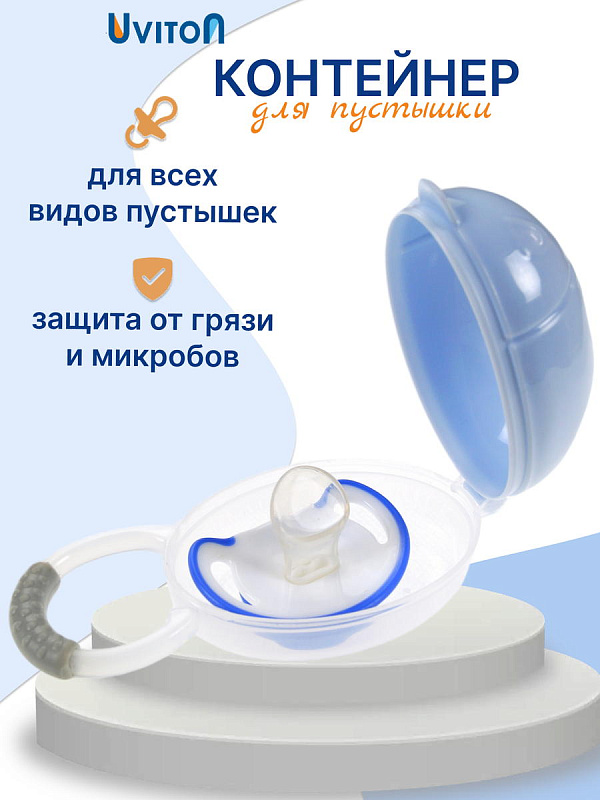 Футляр для пустышки Uviton предназначен для хранения и содержания в чистоте любимой соски или пустышки. Он защищает пустышку от загрязнения, удобно и легко крепится. Гибкая ручка позволяет закрепить контейнер на коляске, автокресле или прогулочной сумке. Изготовлен из безопасных материалов, не содержит бисфенола А.