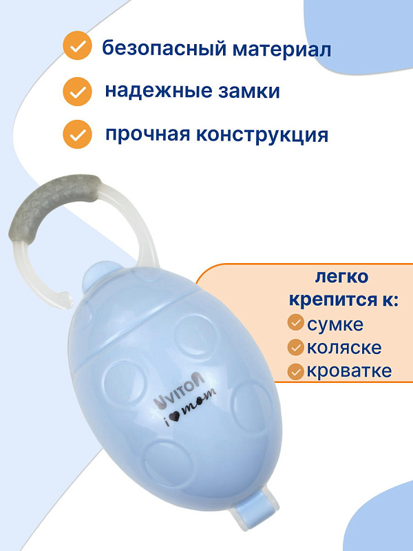 Обеспечивает безопасное и гигиеничное хранение пустышки в сумке, рюкзаке или кармане;