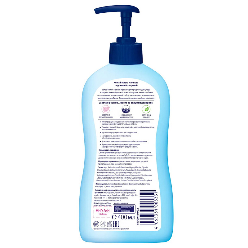 Детский гель Bubchen для купания младенцев с дозатором 400 мл.