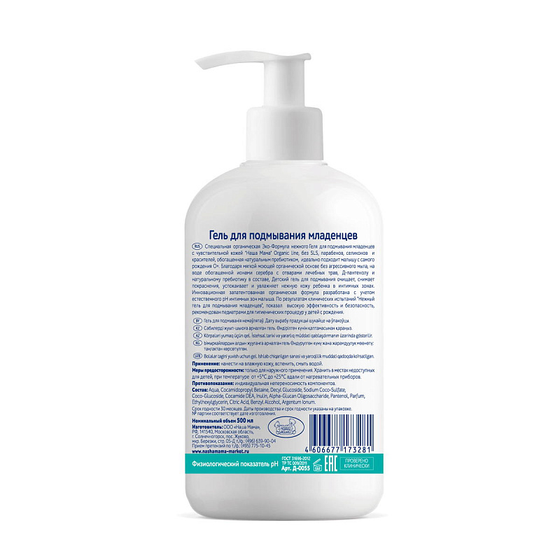 Гель Наша мама Organic Line нежный для подмывания младенцев, 500 мл