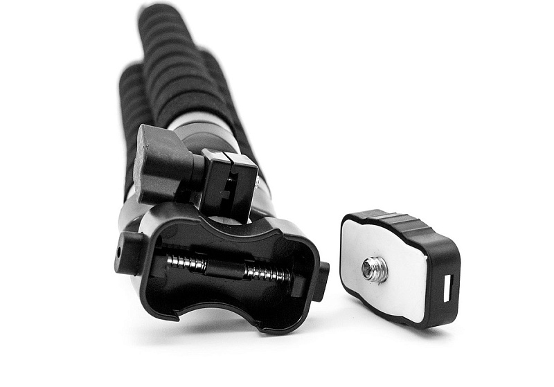 Благодаря удобной конструкции съемного фиксатора треногу можно легко отстегнуть от присоединенного устройства без выкручивания винта простым нажатием на две кнопки по бокам фиксатора площадки. Мягкое и пористое покрытие треноги обеспечивает надежную фиксацию практически с любой поверхностью. Мягкий на ощупь и гибкий штатив-крепление Ramili TR001 изготовлен из высококачественных материалов и обеспечивает надёжную фиксацию. 4 шарнира обеспечивают широкие возможности для точной настройки положения и ракурса зафиксированного на штативе устройства.