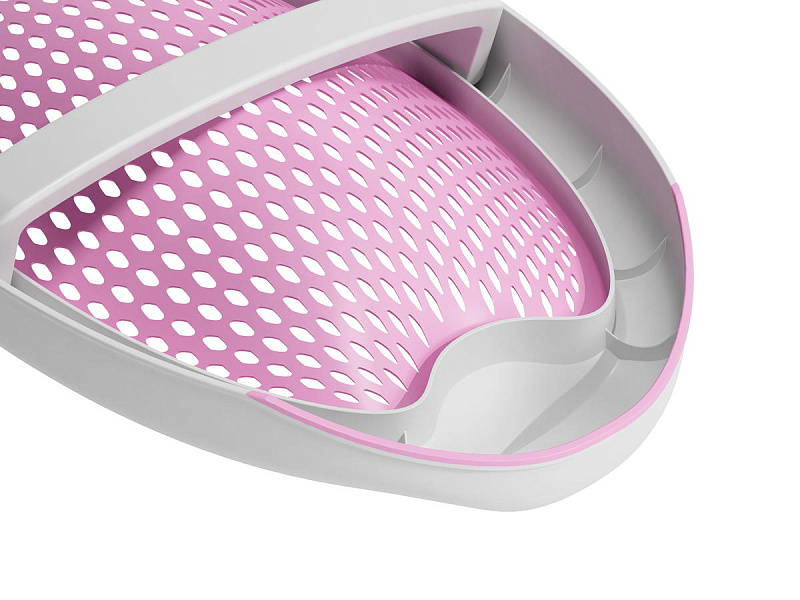 Сиденье из мягкой перфорированной резины, увеличивающее воздухопроницаемость и облегчает полоскание.