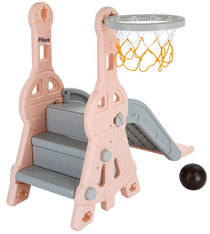 Горка Pituso Космо с баскетбольным кольцом L-MZ02 Бежевый/серый