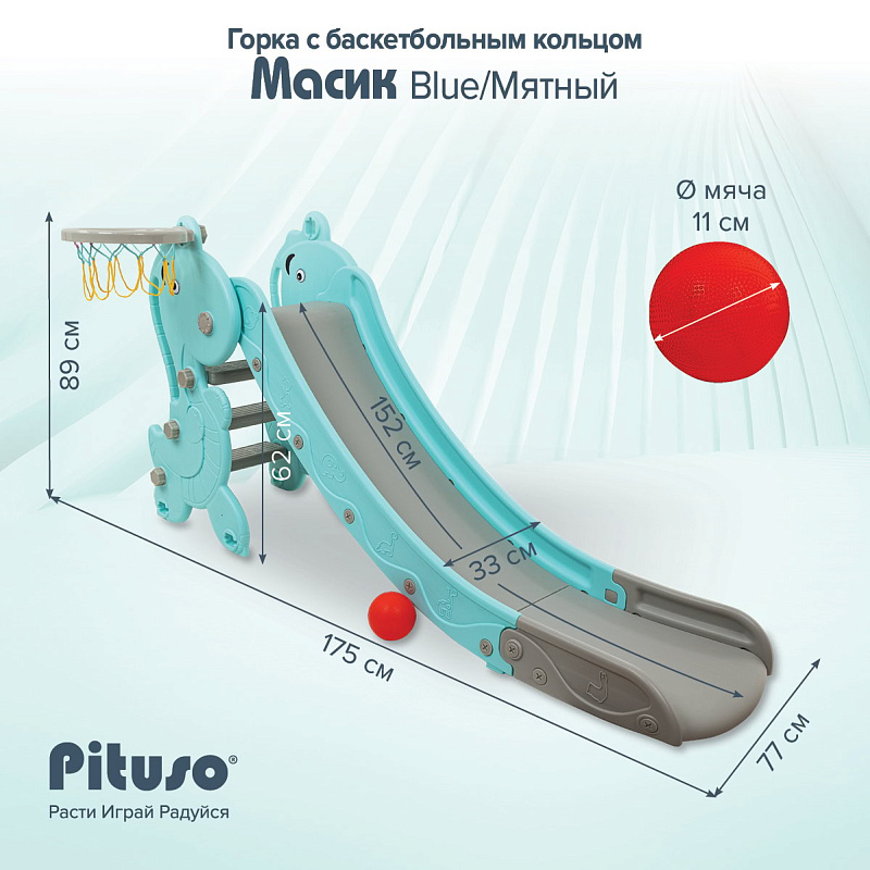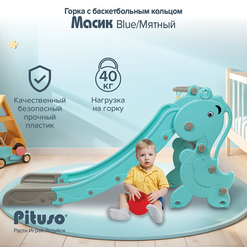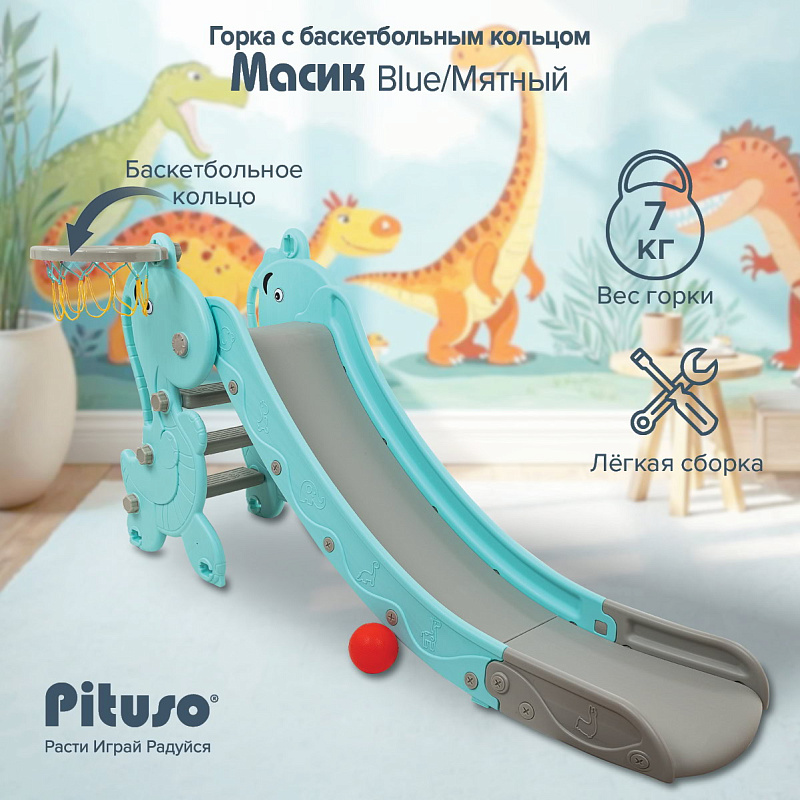 Горка Pituso Масик с баскетбольным кольцом Blue/Мятный