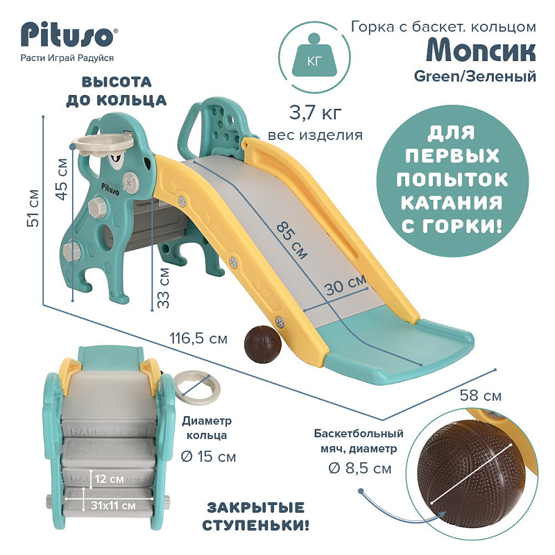 Горка Pituso Мопсик с баскетбольным кольцом Green/Зеленый