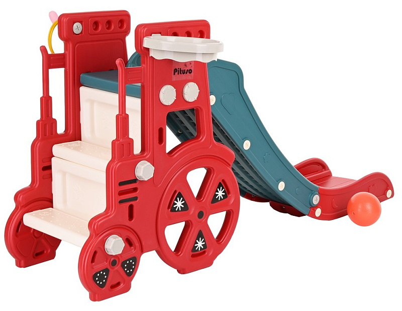 Горка Pituso Ретро с баскетбольным кольцом красный