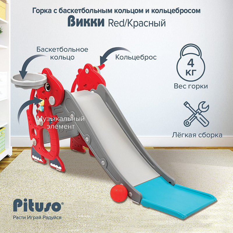 Горка Pituso Викки с баскет.кольцом Red/Красный