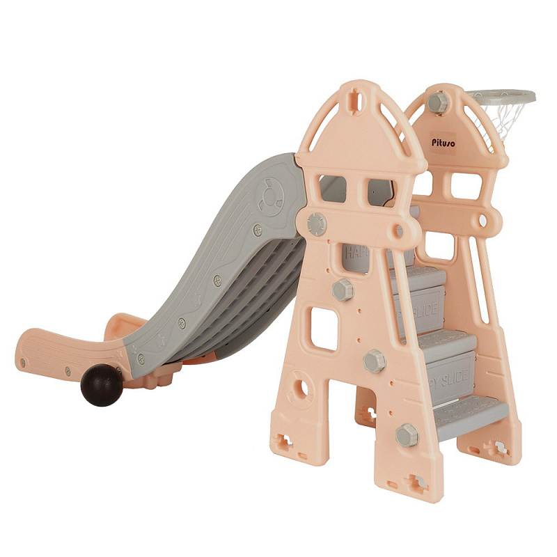 Горка Pituso Замок с баскетбольным кольцом L-DT02 Бежевый/серый