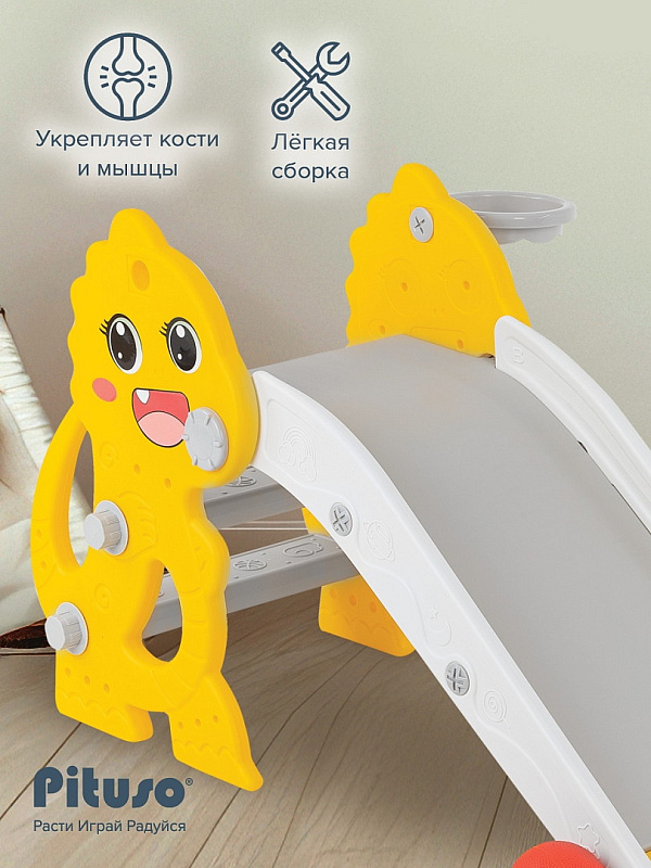 Горка Pituso Заврик с баскет. кольцом UN-DW72 Yellow/ЖелтыйНет оценокХарактеристики