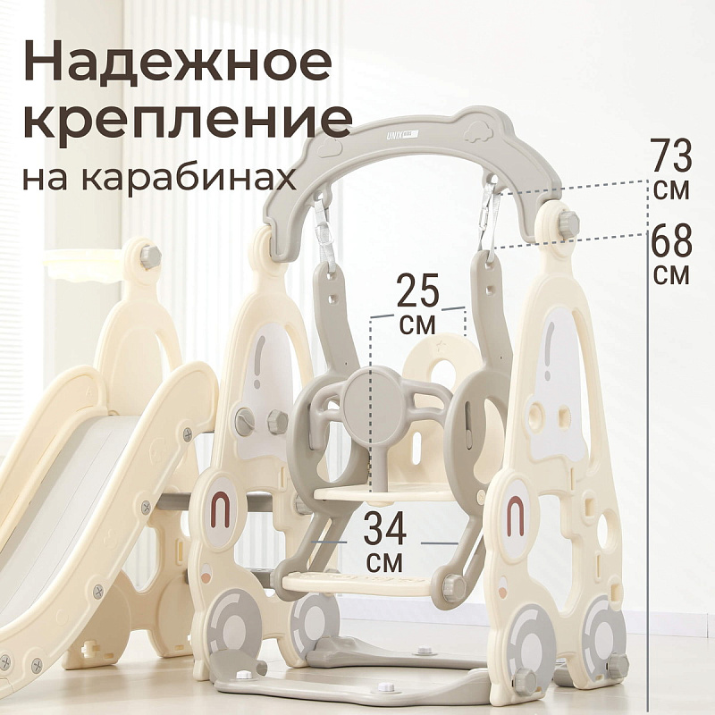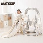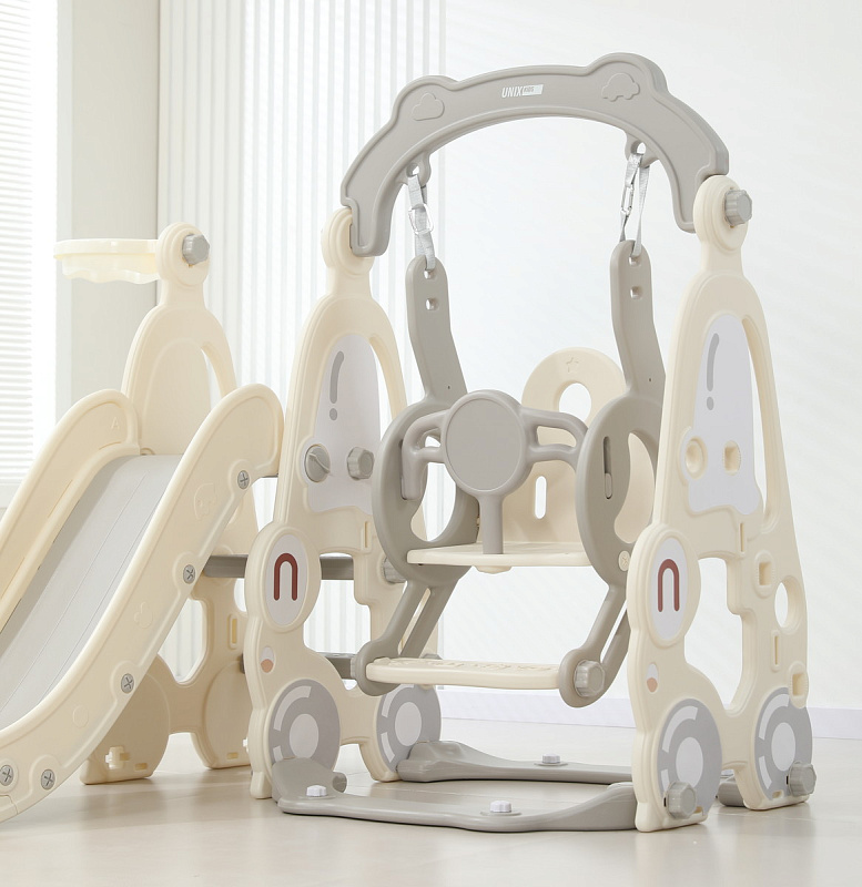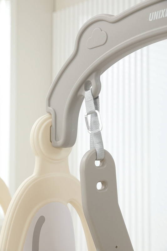Как и все манежи Unix Kids, горка с качелями изготовлена из пищевого пластика 4-го класса — согласно классификации ГОСТ, гипоаллергенного и абсолютно безвредного даже для самых маленьких пользователей. Этот материал не боится UV-лучей, можно использовать на улице.