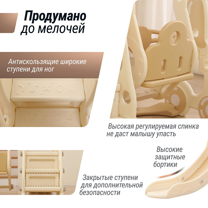 Горка с качелями – идеальный выбор для тех, кто ищет качественный и безопасный игровой комплекс для своих маленьких детей. Эта горка не только обеспечит вашего ребенка веселым времяпрепровождением, но и поможет ему развивать физические способности и координацию движений. Один из ключевых преимуществ этого игрового комплекса – прочность и надежность. Он сделан из высоко качественных и безопасных материалов, а также отвечает всем стандартам качества и безопасности, что подтверждается сертификатами соответствия.