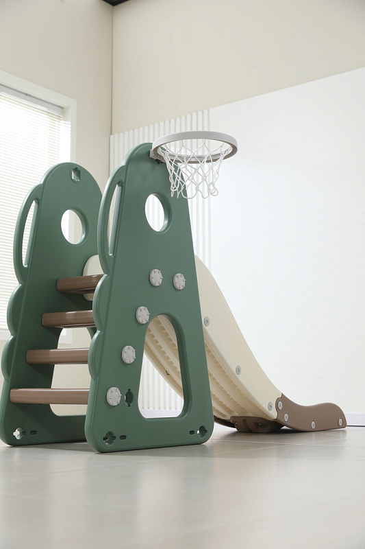Спокойная зеленая палитра и минималистичный дизайн делают продукцию идеальной частью интерьера детской комнаты или придомового пространства. Универсальная горка подходит для дошкольных учреждений, детских площадок загородных домов и жилых помещений, становясь любимым развлечением мальчиков и девочек разных возрастных групп.