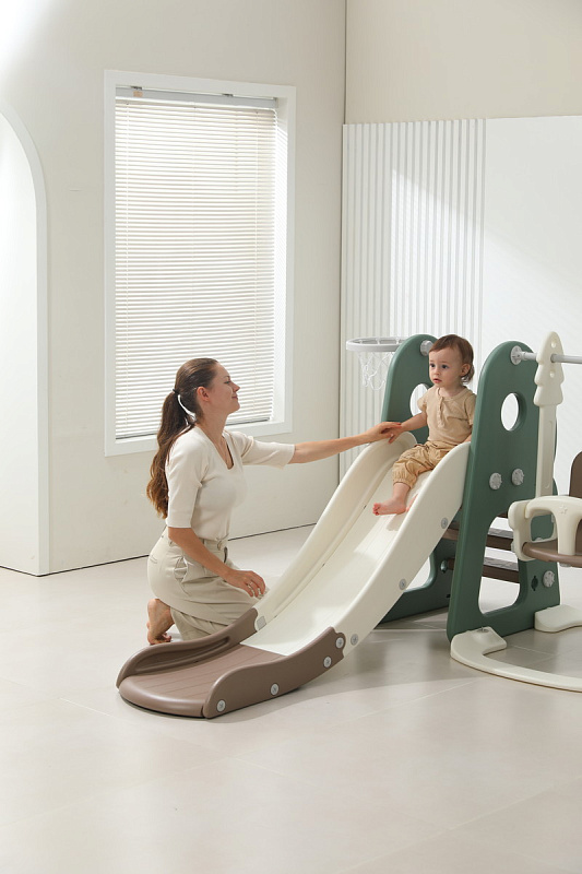 Спокойная зеленая палитра и минималистичный дизайн делают продукцию идеальной частью интерьера детской комнаты или придомового пространства. Универсальная горка подходит для дошкольных учреждений, детских площадок загородных домов и жилых помещений, становясь любимым развлечением мальчиков и девочек разных возрастных групп.