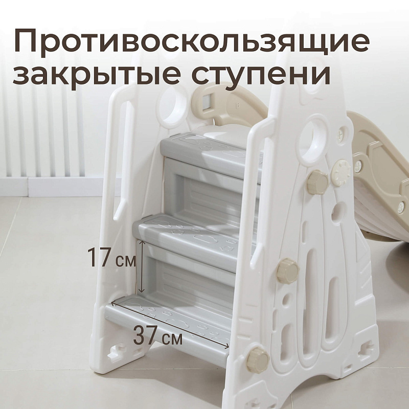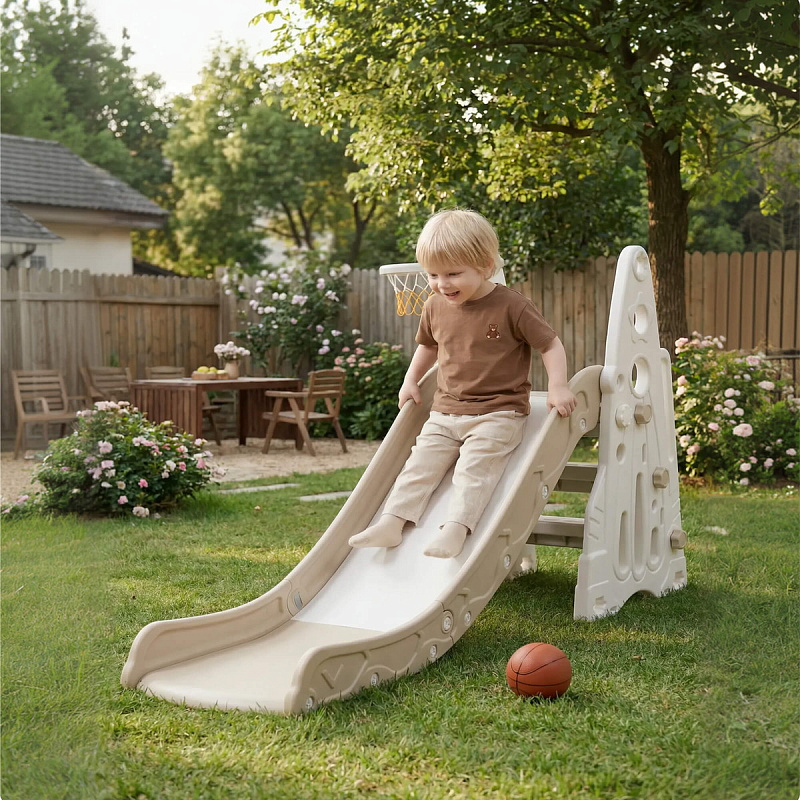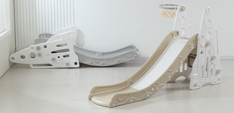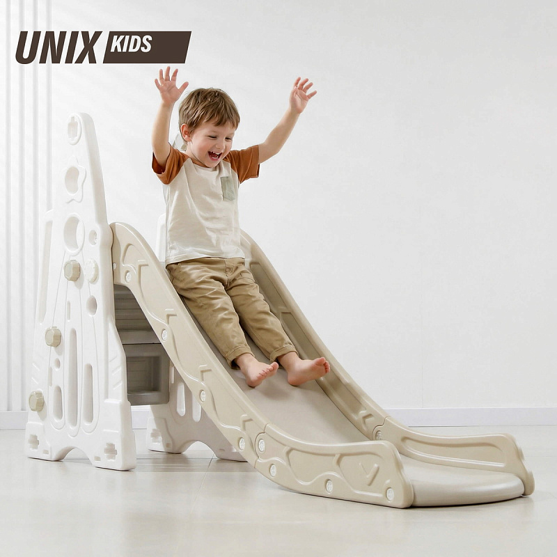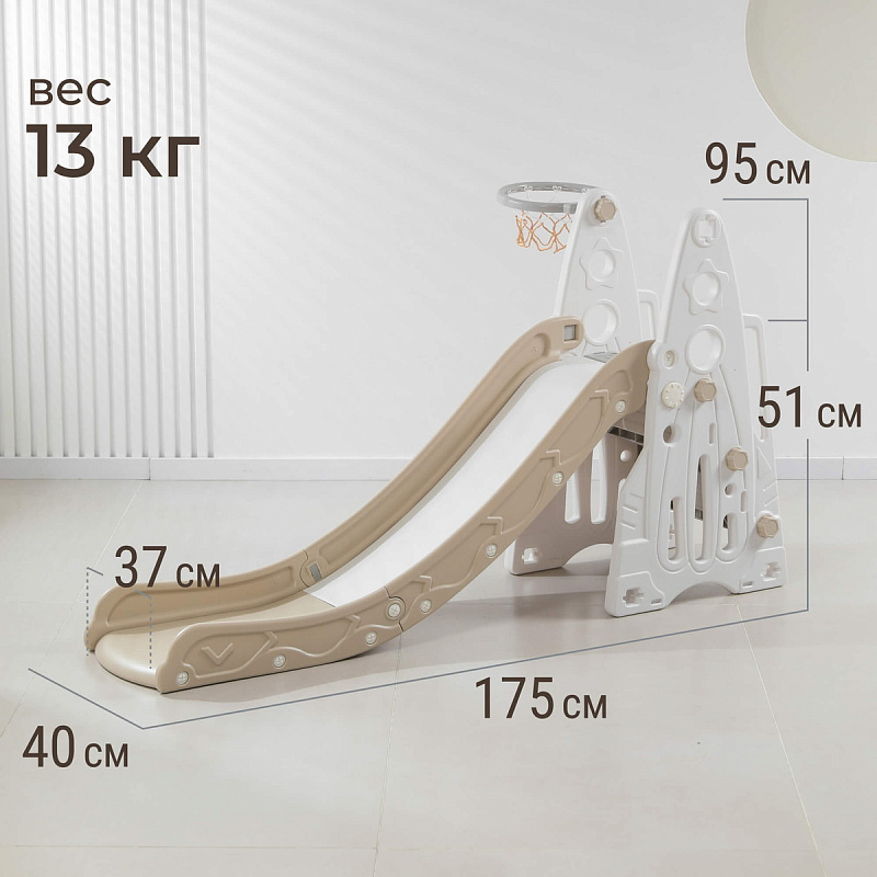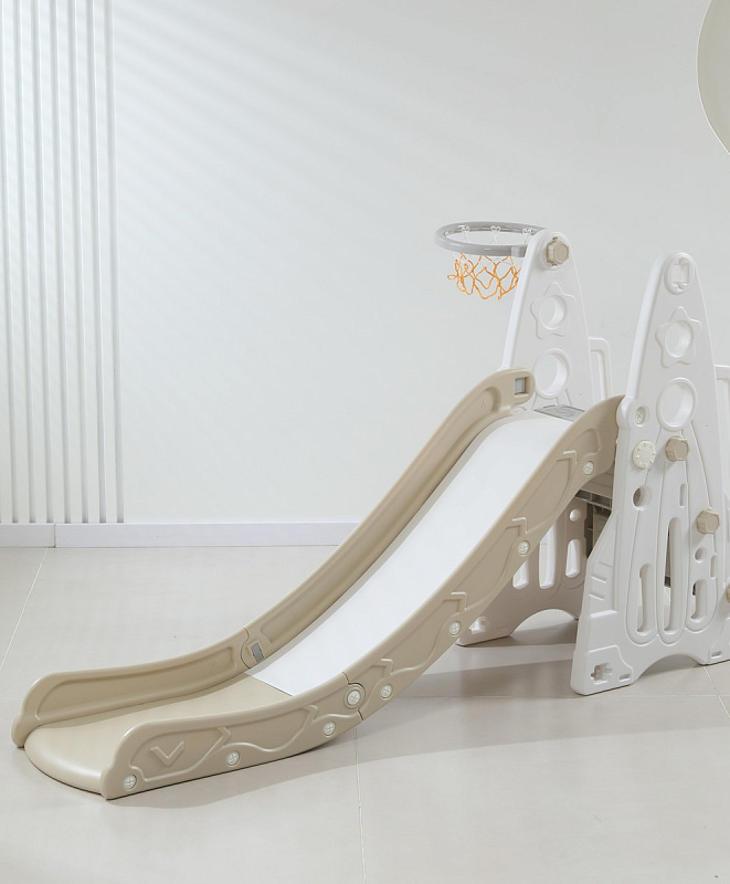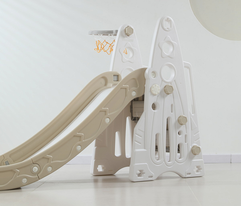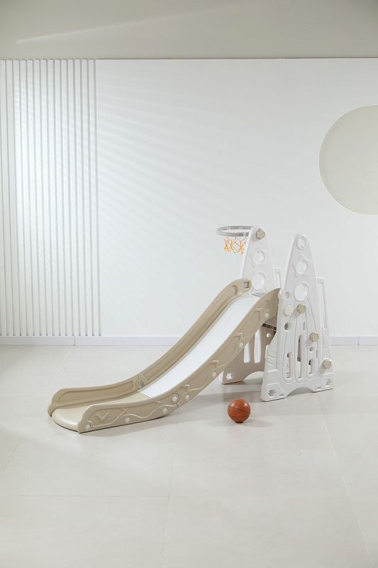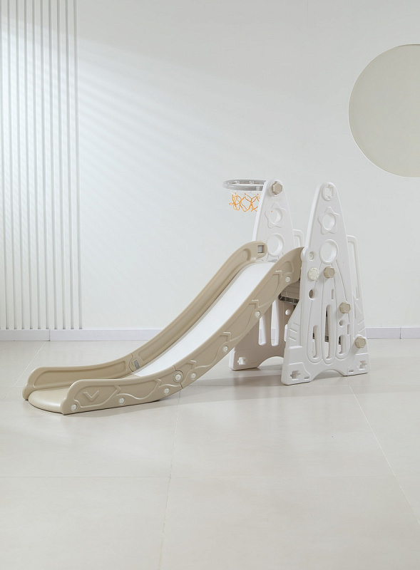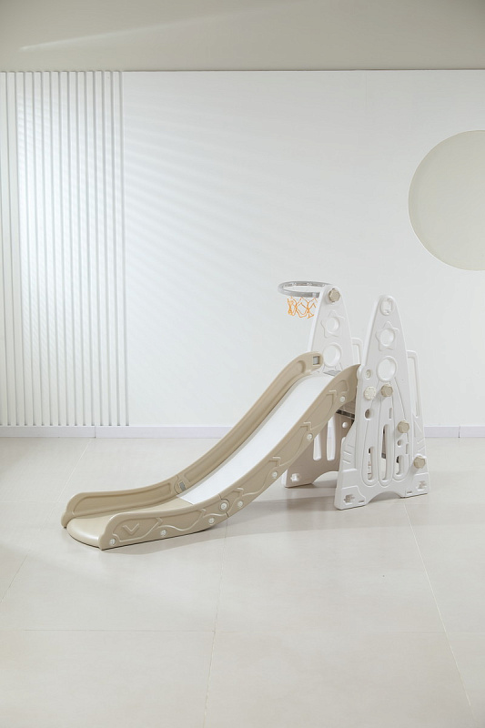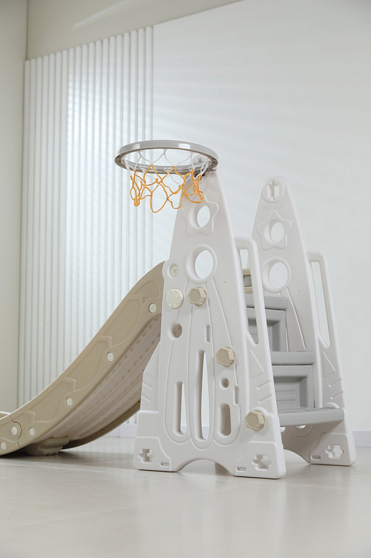Горка UNIX Kids Rocket 145 см с баскетбольным кольцом Бежевый