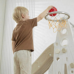 Но главная особенность — это дополнительная возможность играть в баскетбол! Малыш сможет освоить этот популярный вид спорта буквально с первых шагов. Вместе с кольцом поставляется резиновый мячик диаметром 15 см, идеального размера для детских рук. Ребенок получает не только удовольствие от скоростного спуска, но и развивает координацию движений, ловкость и физическую выносливость.