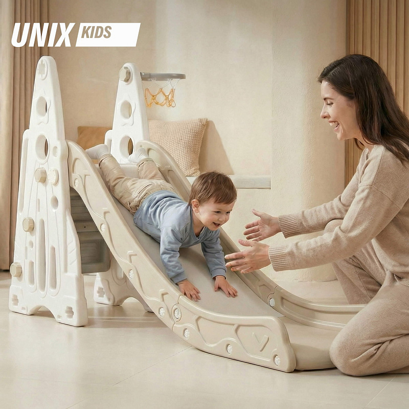 Детская горка для дома и улицы UNIX Kids Rocket (145 см) с баскетбольным кольцом подарит любому ребенку увлекательное пространство для активных игр и занятий спортом дома или на даче. Представьте себе детскую площадку мечты: компактная, удобная и абсолютно безопасная!