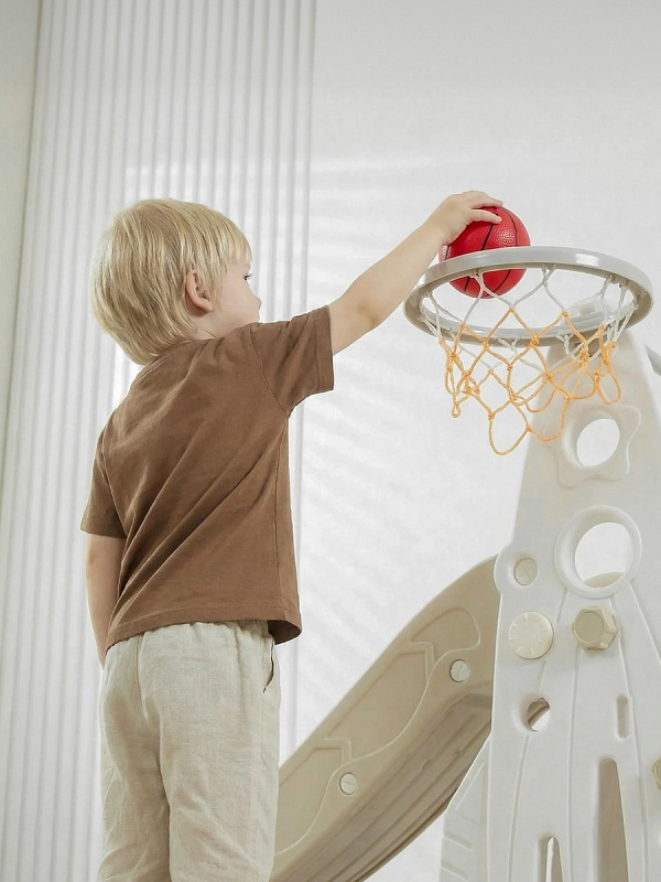 Горка UNIX Kids Rocket 145 см с баскетбольным кольцом Бежевый