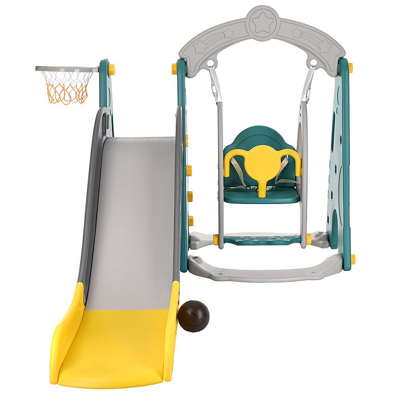 В наборепластиковая горка, качели, лесенка, кольцо баскетбольное (1 шт.), мяч - 1 шт