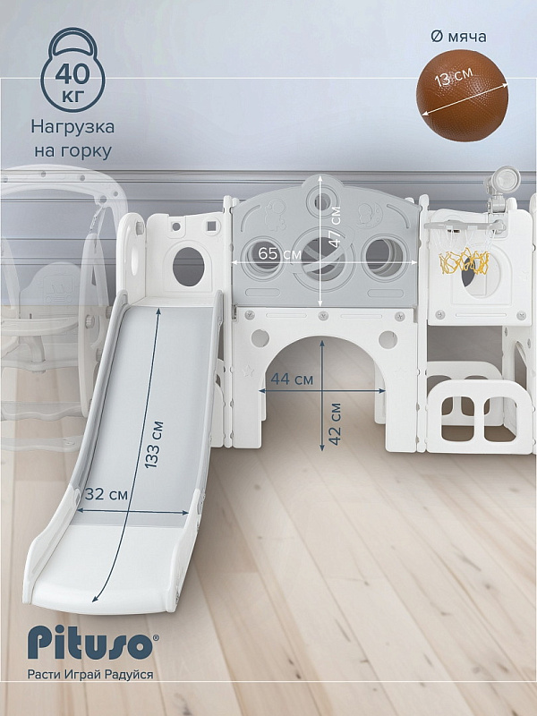 Горка-Комплекс Pituso Little Prodigy (горка,качели,баскет.кольцо) White/Grey/СерыйНет оценокХарактеристики