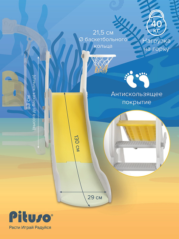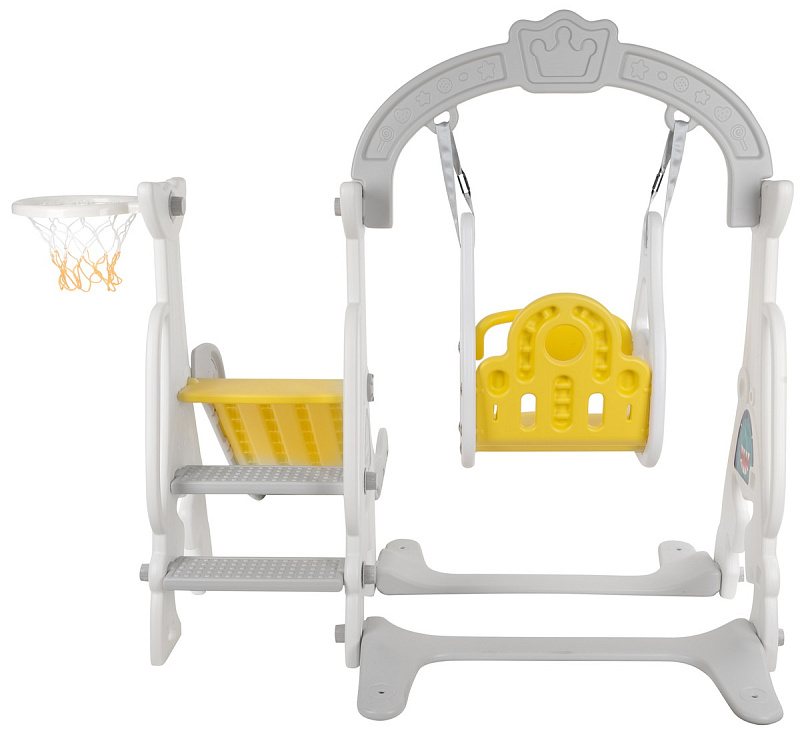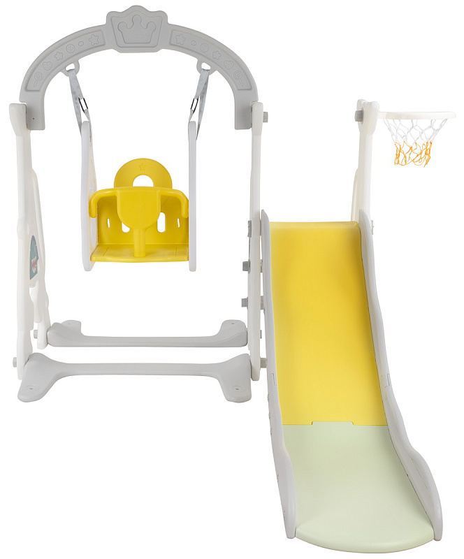 Комплектация: пластиковая горка, качели, кольцо баскетбольное (1 шт.), мяч (1 шт.).