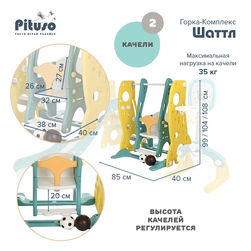 Горка-Комплекс Pituso Шаттл горка,качели,баскет.кольцо,футб.ворота Yellow/ЖелтыйНет оценокХарактеристики