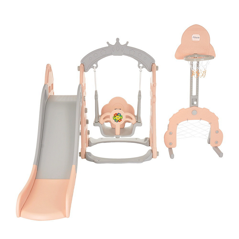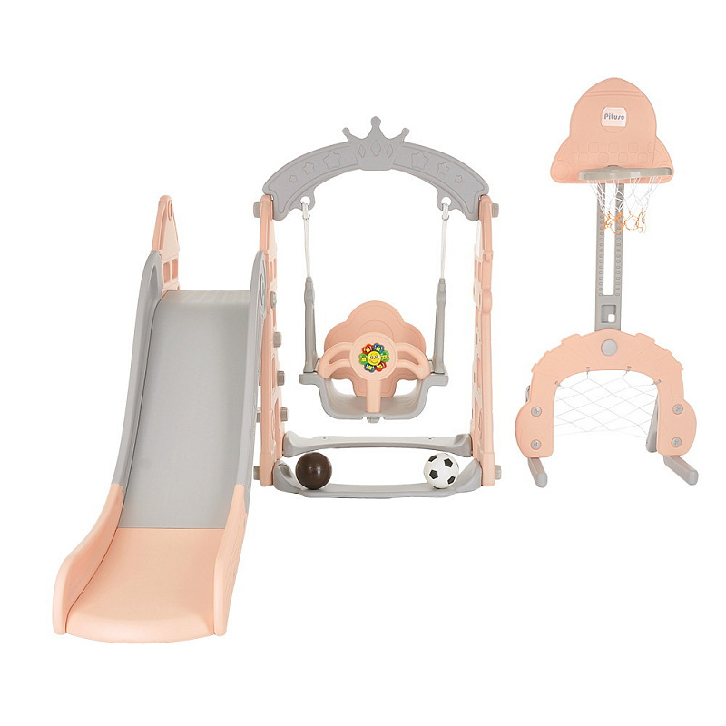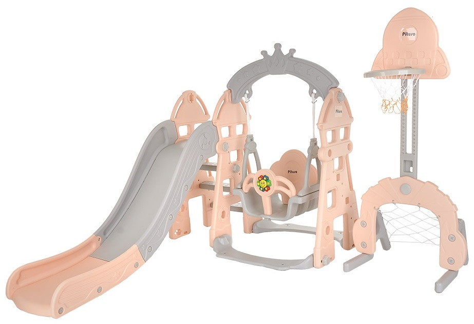 - в комплекте: горка, качели, лесенка, ворота, баскетбольное кольцо