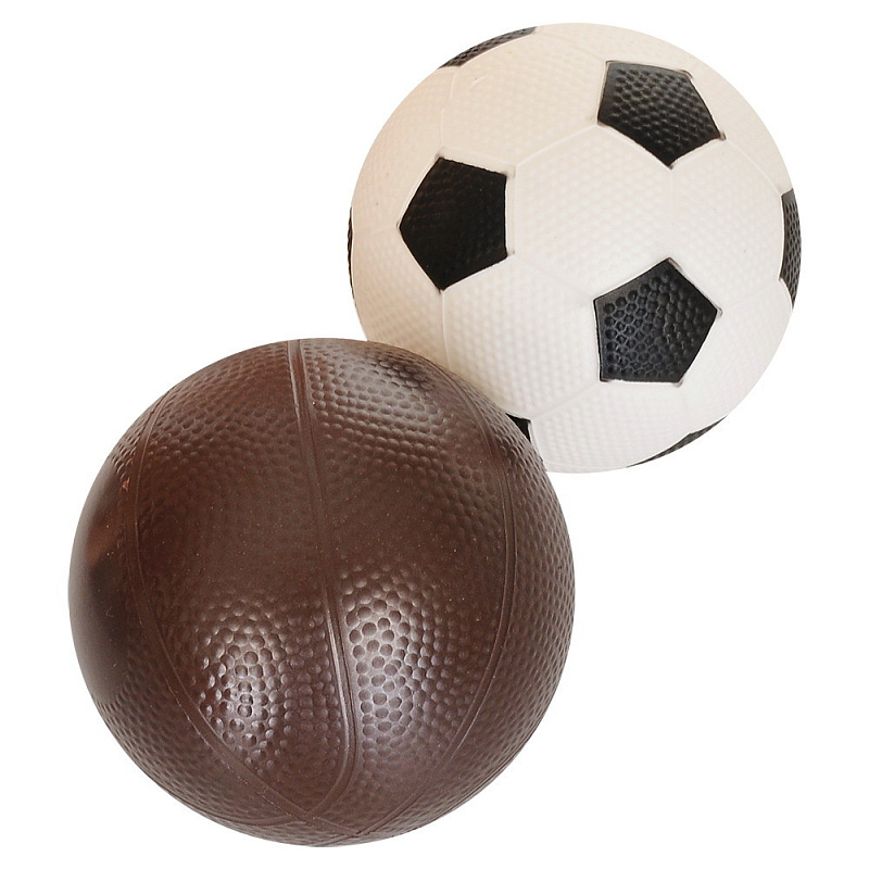 - в комплекте: баскетбольный мяч (15 см) и футбольный мяч (15 см)