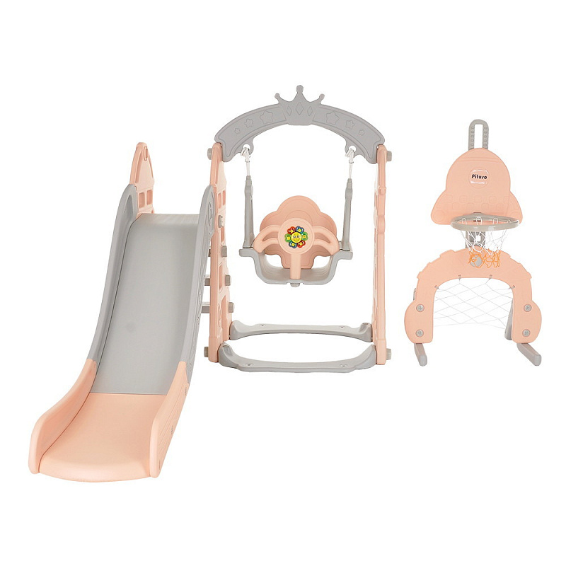 Максимально безопасная продуманная конструкция, ненавязчивый дизайн, возможность раздельного использования делают ее лучшим подарком. Идеально подходит для семей с несколькими детьми, в том числе разных возрастов. Пока младший счастливо качается в качелях, старший радуется на горке или забрасывает мяч в баскетбольное кольцо. А их еще и два – можно и друга пригласить поиграть.