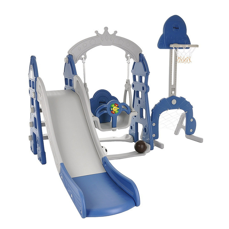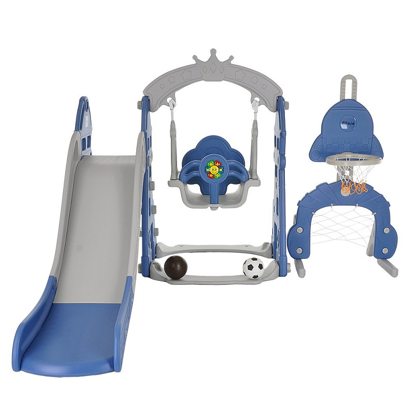 Горка-Комплекс Pituso Замок горка,качели,футб.ворота,баскет.стойка,звук Синий/серый