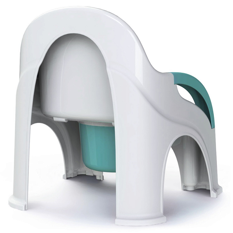 Горшок с четырьмя ножками, спинкой и подлокотниками похож на министерское кресло. Такая модель устойчива, но главное – ребенок сразу понимает, как на него садиться. Упасть с горшка-стульчика практически невозможно. Малыш сможет сам переставлять горшок и даже выливать из него в унитаз благодаря съемной чаше.