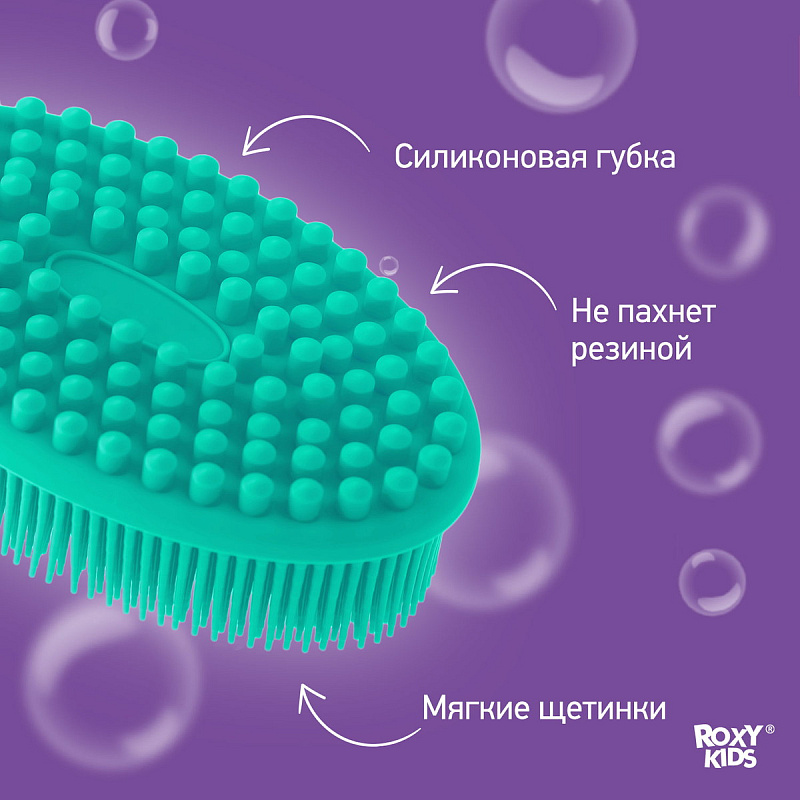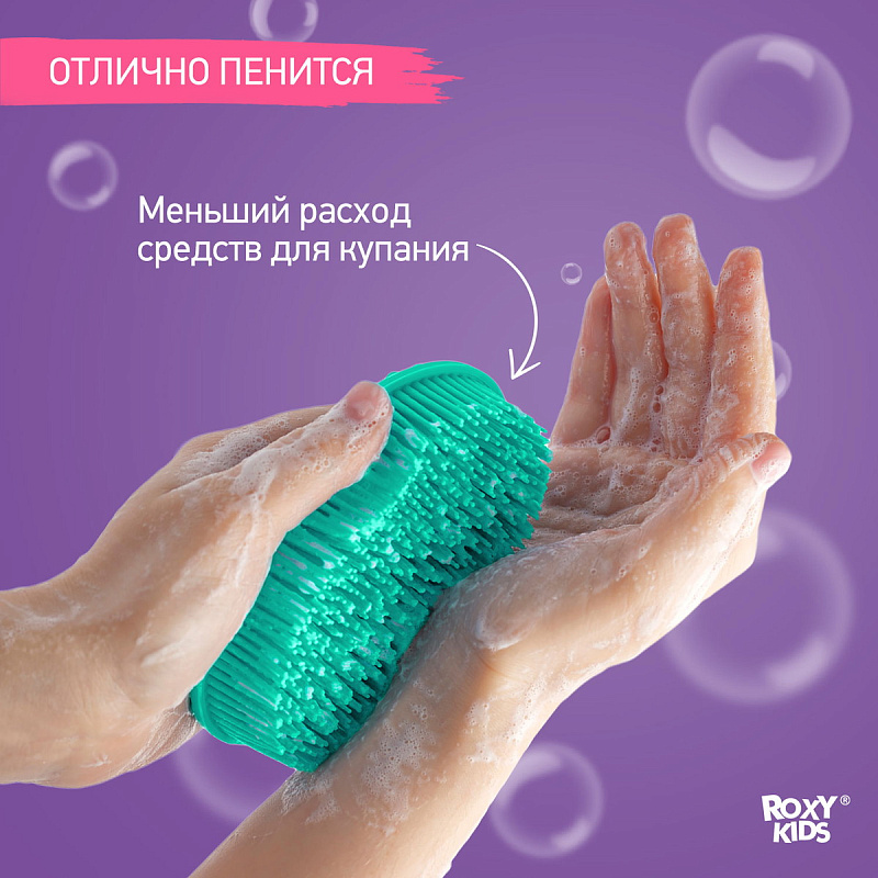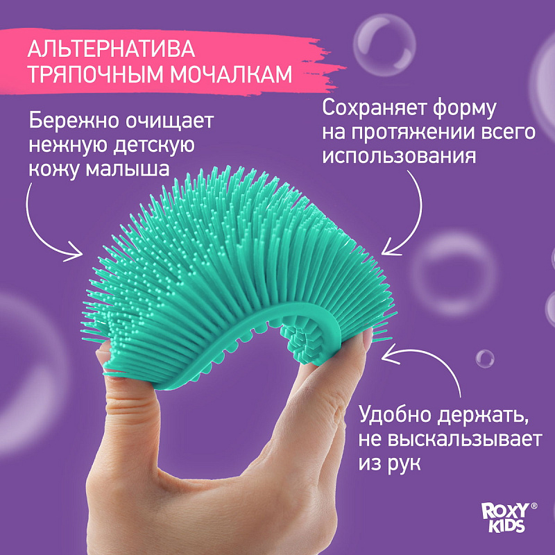 Мягкая губка для купания малышей является отличной альтернативой тряпочным мочалкам, которые быстро приходят в негодность. Она бережно очищает кожу и абсолютно безвредна для малышей. Изготовлена из сертифицированного FDA силикона медицинского класса. Этот материал гипоаллергенен, экологичен и безопасен, инертен к бактериям, а также выдерживает температуры до 250 градусов Цельсия (можно кипятить для обеззараживания). Силиконовую губку можно грызть. Она отлично пенится и хорошо очищает нежную детскую кожу, улучшает кровообращение, обеспечивает массажный эффект. Губка быстро высыхает, проста в уходе. Подходит для ежедневного использования для чувствительной кожи и не деформируется в процессе использования. В ассортименте ROXY-KIDS есть несколько цветов и форм мягких губок.