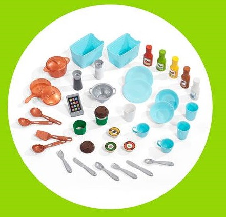 - В комплекте: кухня, набор аксессуаров (24 предмета, включая посуду, кухонные принадлежности, столовые приборы и многое другое)