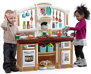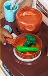 Уютная игровая кухня «Лучшие друзья» содержит множество удобных функций: от стильной «кофеварки» до реалистичной плитки с подсветкой и звуковыми эффектами, имитирующими процесс готовки. Подсветка электроплитки и звуковое сопровождение сделают игру реалистичной: достаточно поставить чайник или сковородку, вы услышите реалистичные звуки кипящей воды и шипящего масла (требуются 2 батарейки АА; не входят в комплект). Всегда можно угостить друзей чашечкой «кофе», сваренного в реалистичной кофемашине. Приготовить обед — что может быть проще! Встроенная плитка, микроволновая печь и холодильник со свежими «продуктами» всегда под рукой.