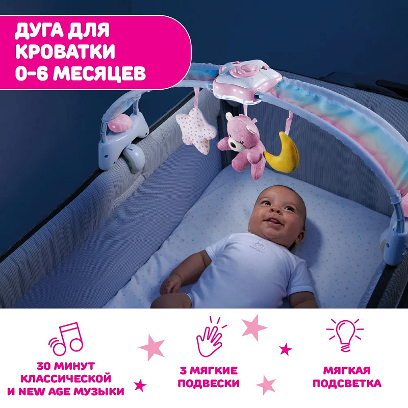 - улассические мелодии, подвесные игрушки и мягкий белый свет звездообразного проектора помогут ребёнку расслабиться