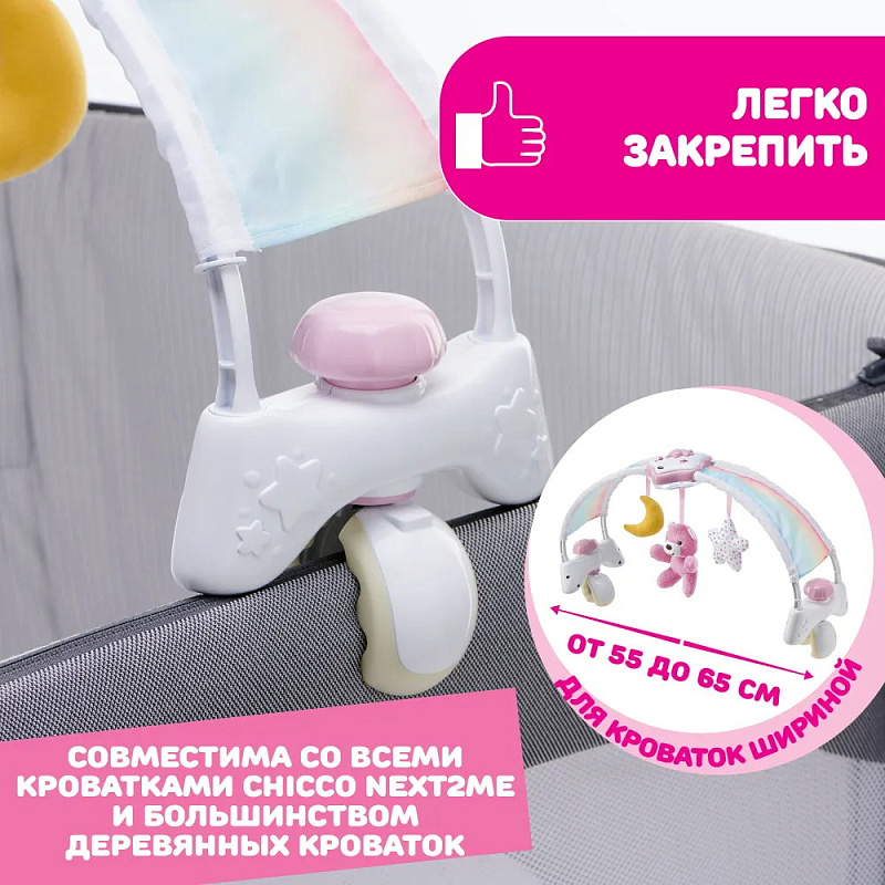 - совместима с люльками и детскими кроватками шириной 55-65 см, в частности с Chicco Next2Me