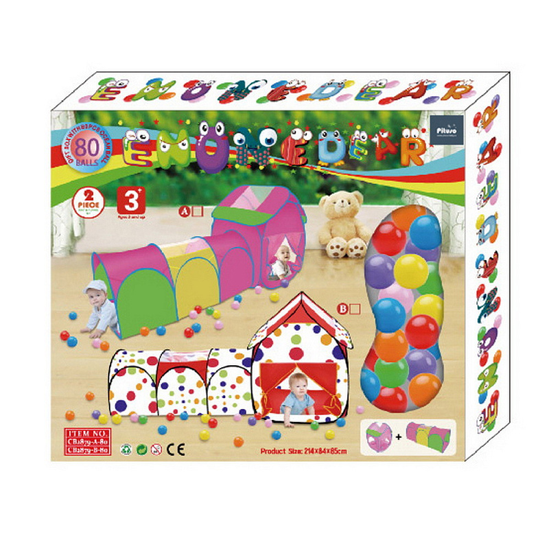 - в комплекте с палаткой туннель и 80 разноцветных шаров (диаметр 6 см)