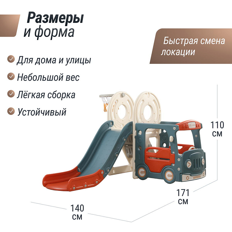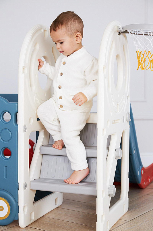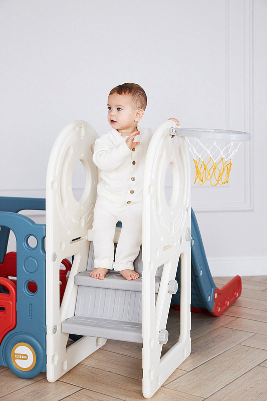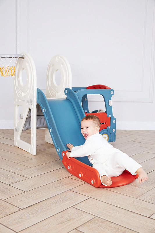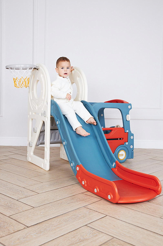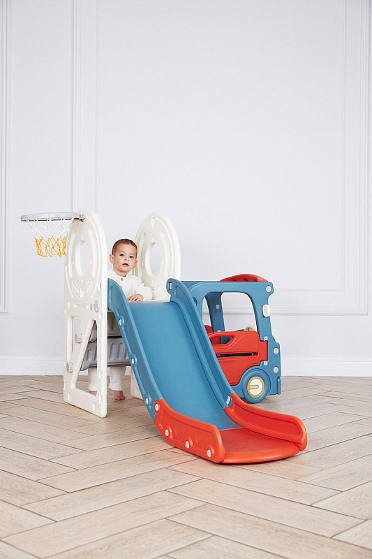 Мы уделяем внимание каждой детали, поэтому все элементы пластикового комплекса имеют закругленную форму во избежание травм. Прочный пластик не боится UV лучей и не выгорает на солнце, поэтому вы смело можете использовать комплекс с горкой не только дома, но и на улице! Детский игровой комплекс состоит из удобной горки, машинки и баскетбольного кольца, в некоторых моделях поставляется качель.