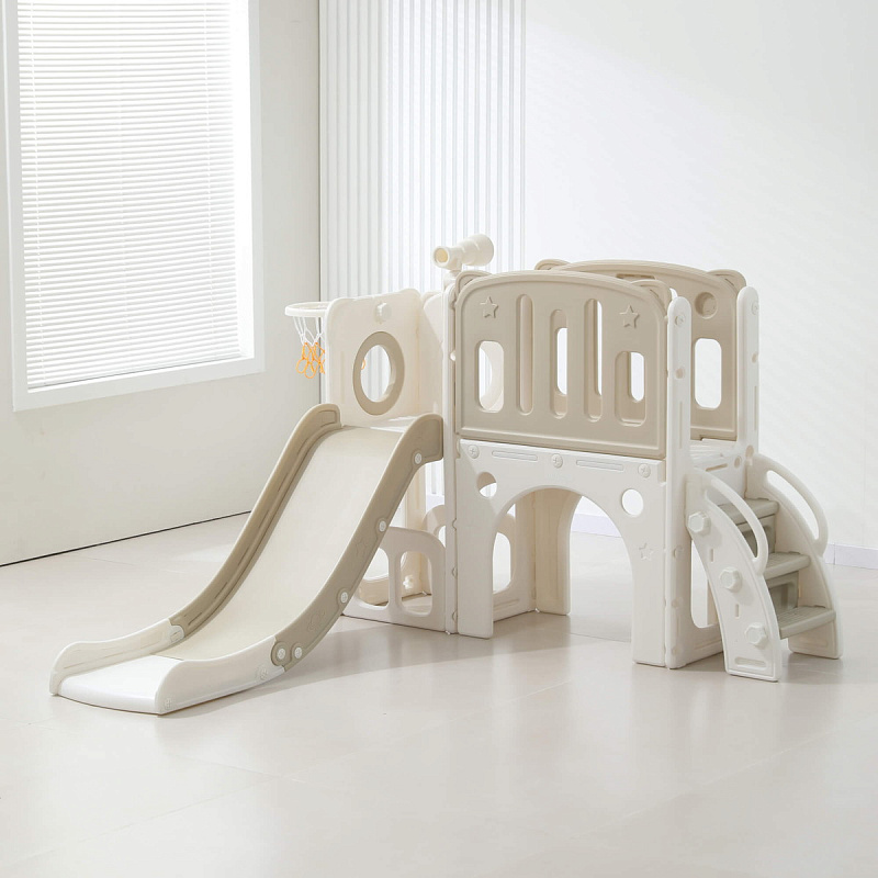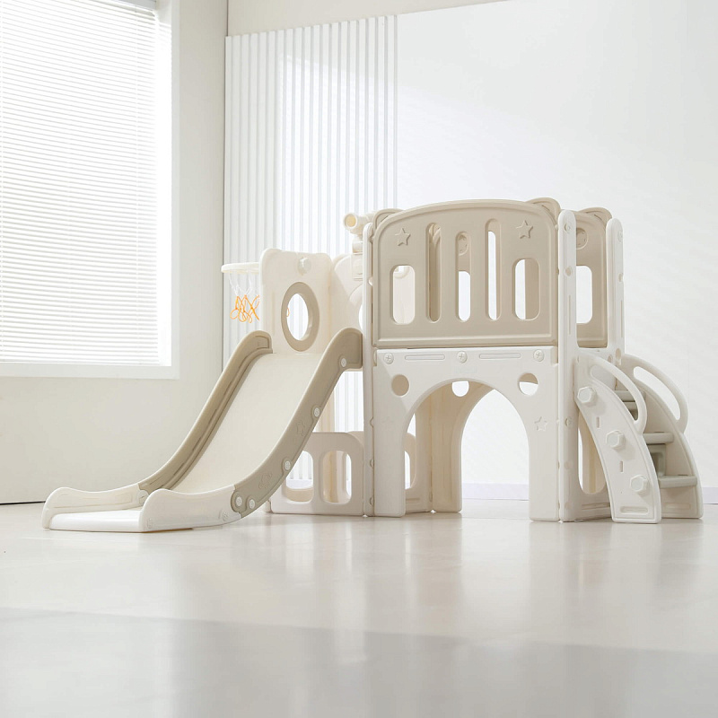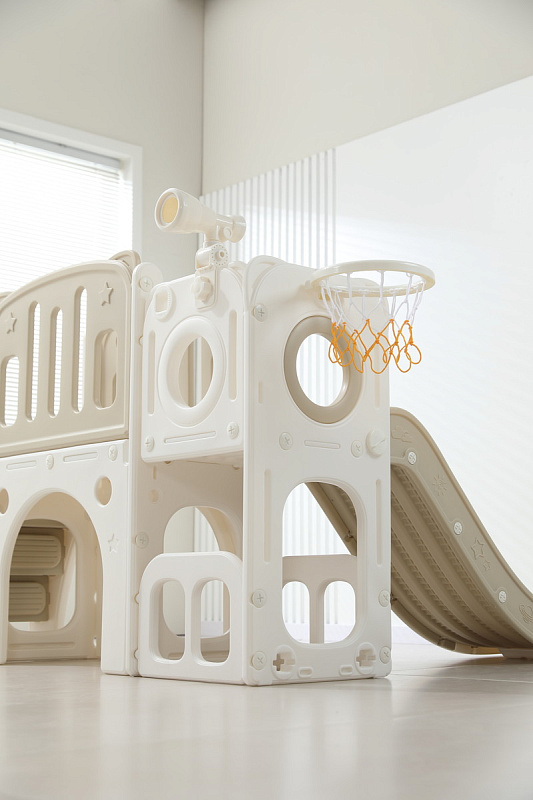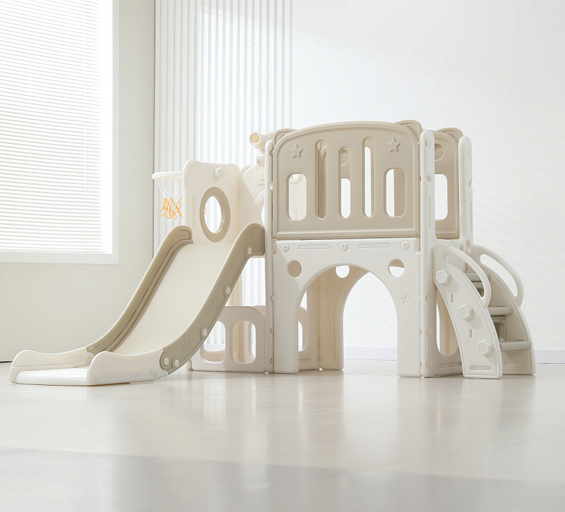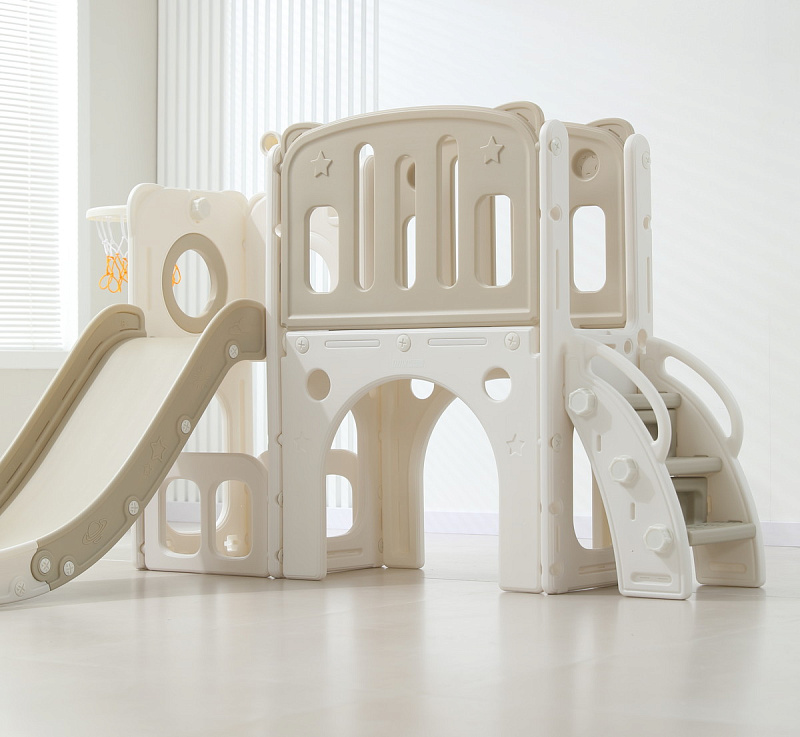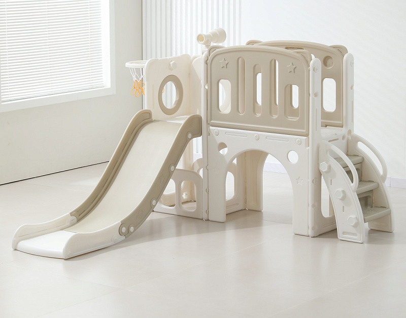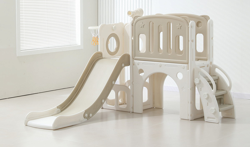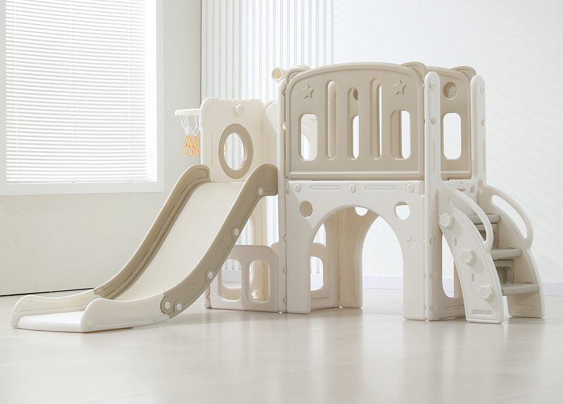 Конструктивные особенности игрового центра для малышей с пластиковой горкой предусматривают модульность и универсальность. Это заключается в его способности адаптироваться к различным условиям эксплуатации: продукт одинаково успешно применяется как внутри помещений, так и на открытых площадках: на улице и даче, предоставляя широкие возможности для организации активной деятельности и развития физических способностей ребёнка.