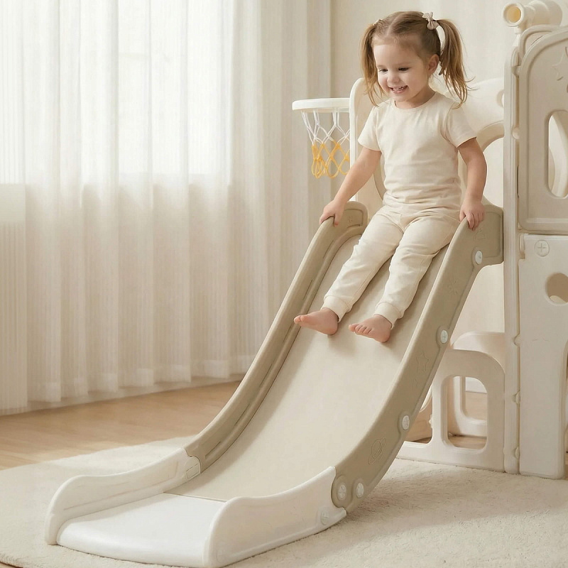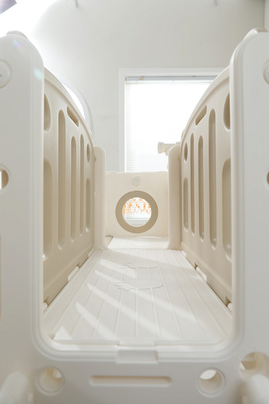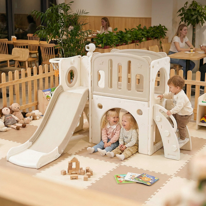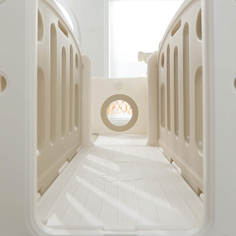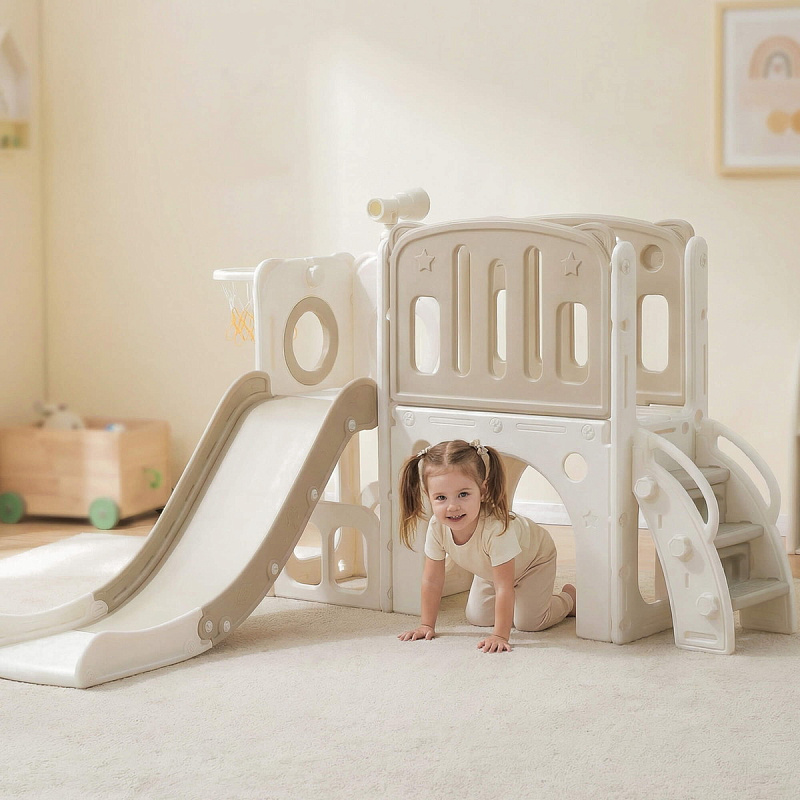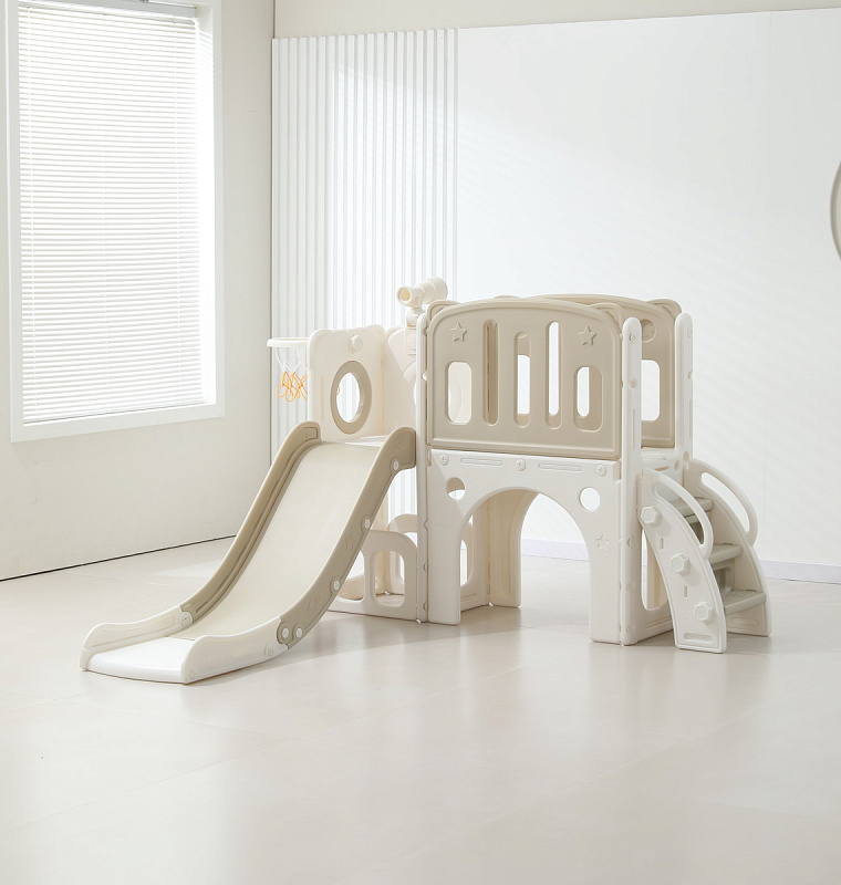 Конструктивные особенности игрового центра для малышей с пластиковой горкой предусматривают модульность и универсальность. Это заключается в его способности адаптироваться к различным условиям эксплуатации: продукт одинаково успешно применяется как внутри помещений, так и на открытых площадках: на улице и даче, предоставляя широкие возможности для организации активной деятельности и развития физических способностей ребёнка.