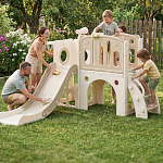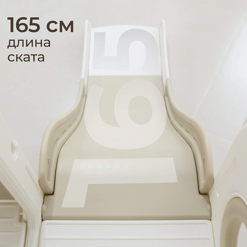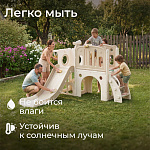 - Горку со спуском 165 см с гладкими поверхностями и противоскользящими ступенями, обеспечивающими безопасность при активном отдыхе;
