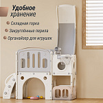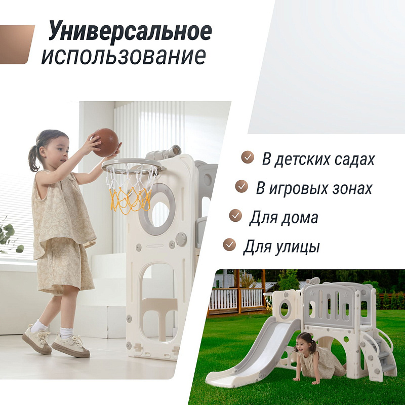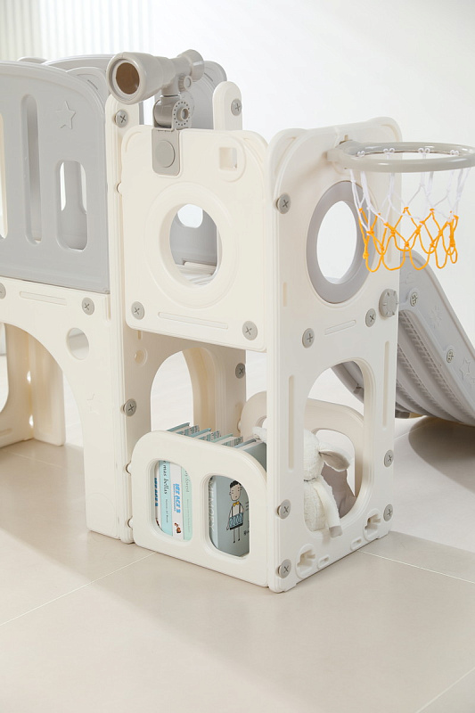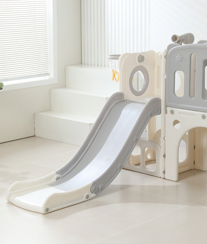 Конструктивные особенности игрового центра для малышей с пластиковой горкой предусматривают модульность и универсальность. Это заключается в его способности адаптироваться к различным условиям эксплуатации: продукт одинаково успешно применяется как внутри помещений, так и на открытых площадках: на улице и даче, предоставляя широкие возможности для организации активной деятельности и развития физических способностей ребёнка.