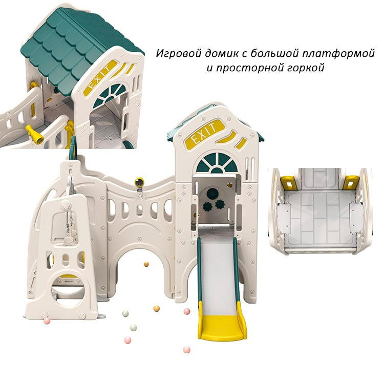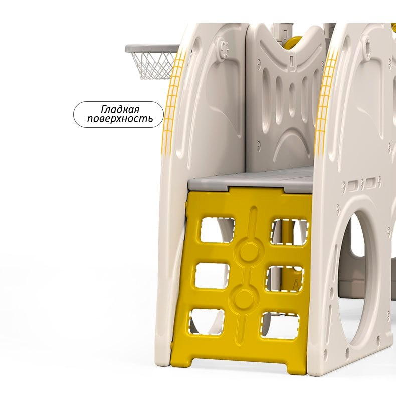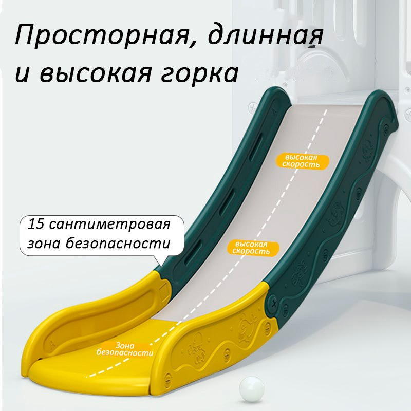 Комплекс состоит из нескольких элементов, включая удобную горку. Все составляющие комплекса выполнены из качественных материалов, которые обеспечивают высокую прочность и долговечность. В комплект также входят яркие детали, которые привлекают внимание и привносят красок в окружающую обстановку.