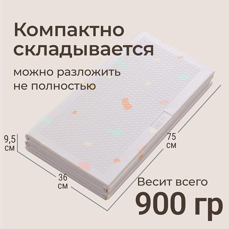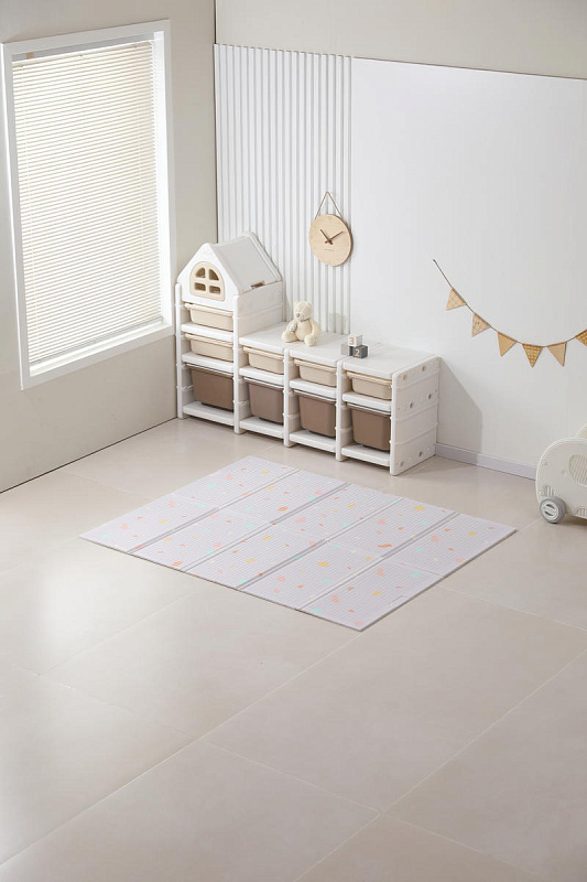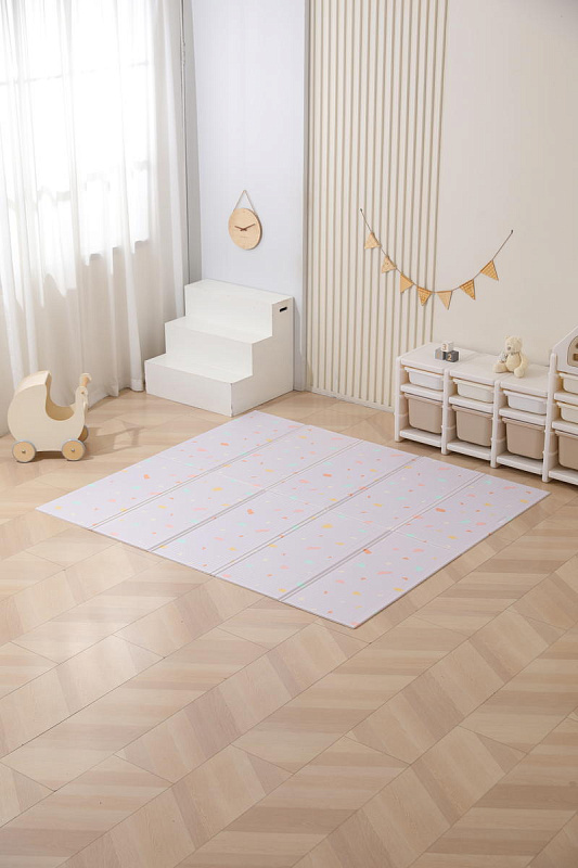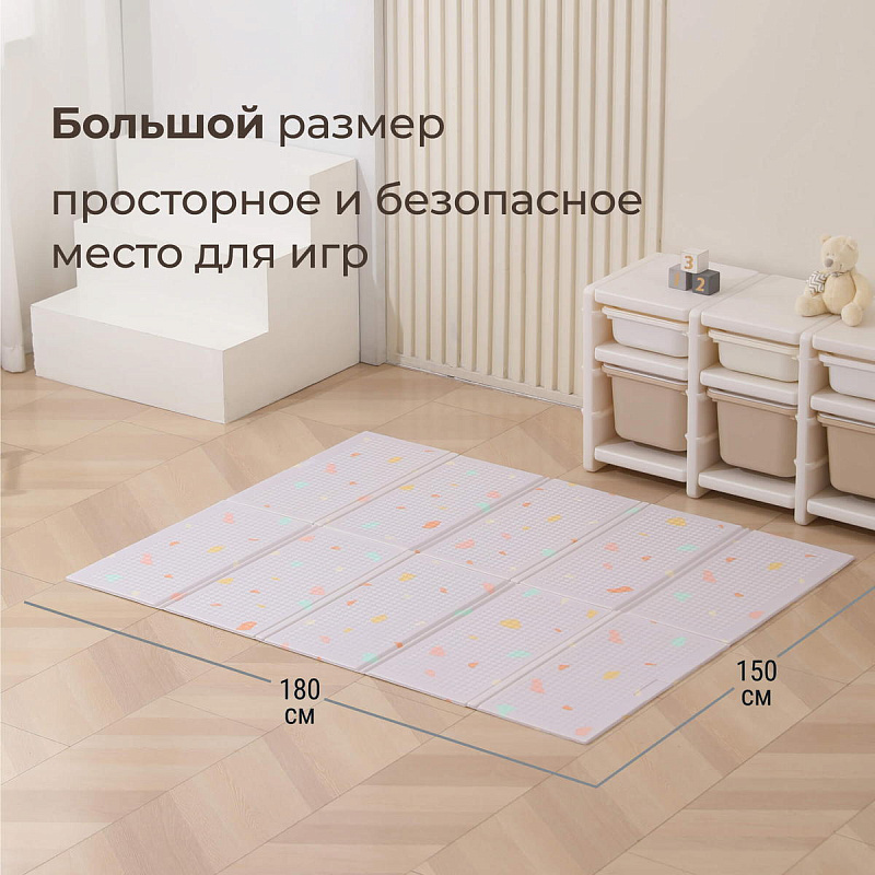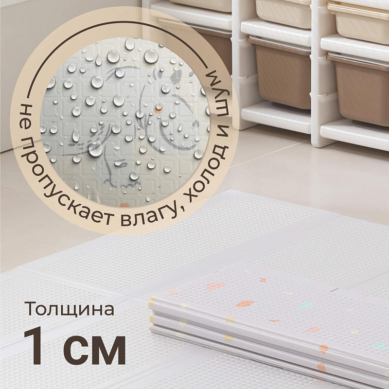 Это больше, чем просто коврик для малышей на пол — это целый мир увлекательных приключений, спрятанный внутри удобного складного изделия. Дизайн разработан специально для маленьких исследователей: привлекательные узоры и формы, способствующие развитию воображения и творческих способностей. Двусторонний коврик в детскую комнату позволяет малышу изучать две стороны, играя с удовольствием на обеих поверхностях. Такие качества делают его идеальным вариантом как полноценного покрытия пола в детской комнате, так и мобильным аксессуаром для прогулок на свежем воздухе, фотосессий или занятий вне дома.