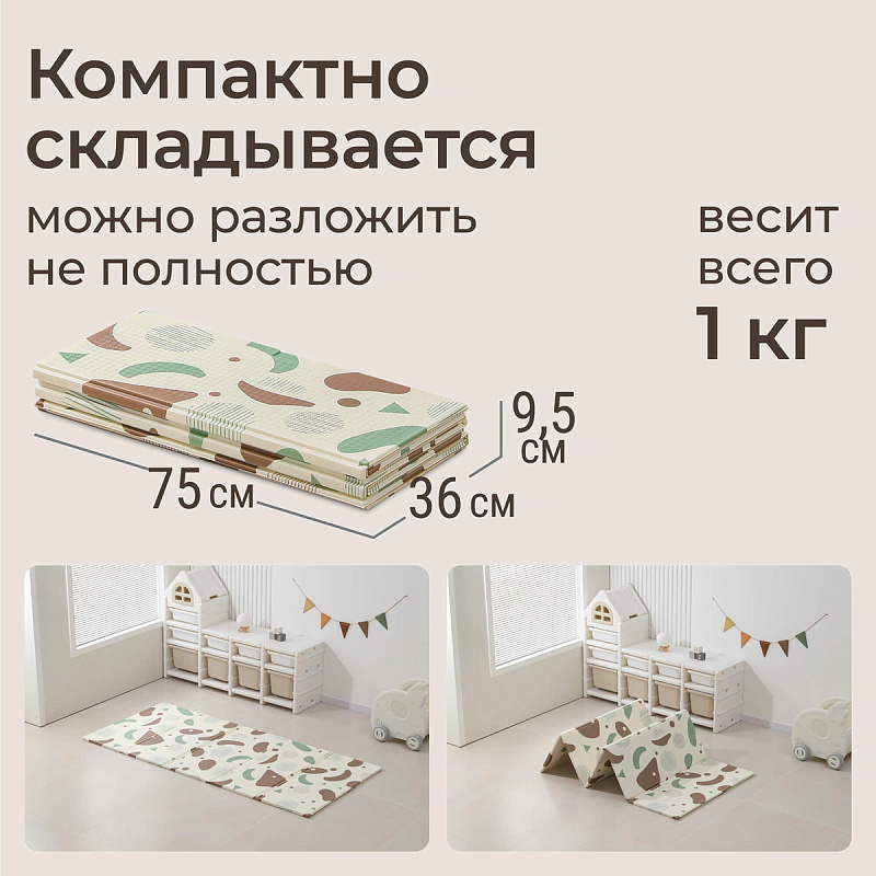 Это больше, чем просто коврик для малышей на пол — это целый мир увлекательных приключений, спрятанный внутри удобного складного изделия. Дизайн разработан специально для маленьких исследователей: привлекательные узоры и формы, способствующие развитию воображения и творческих способностей. Двусторонний коврик в детскую комнату позволяет малышу изучать формы и рисунки с одной стороны или играя с удовольствием на обеих поверхностях. Такие качества делают его идеальным вариантом как полноценного покрытия пола в детской комнате, так и мобильным аксессуаром для прогулок на свежем воздухе, фотосессий или занятий вне дома.